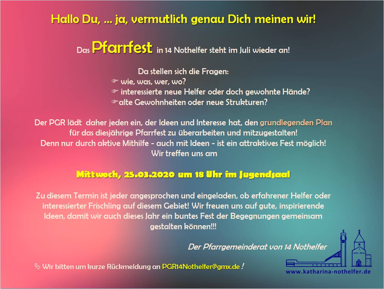 Pfarrfest 2020 in Hl. 14 Nothelfer - Vorbereitung